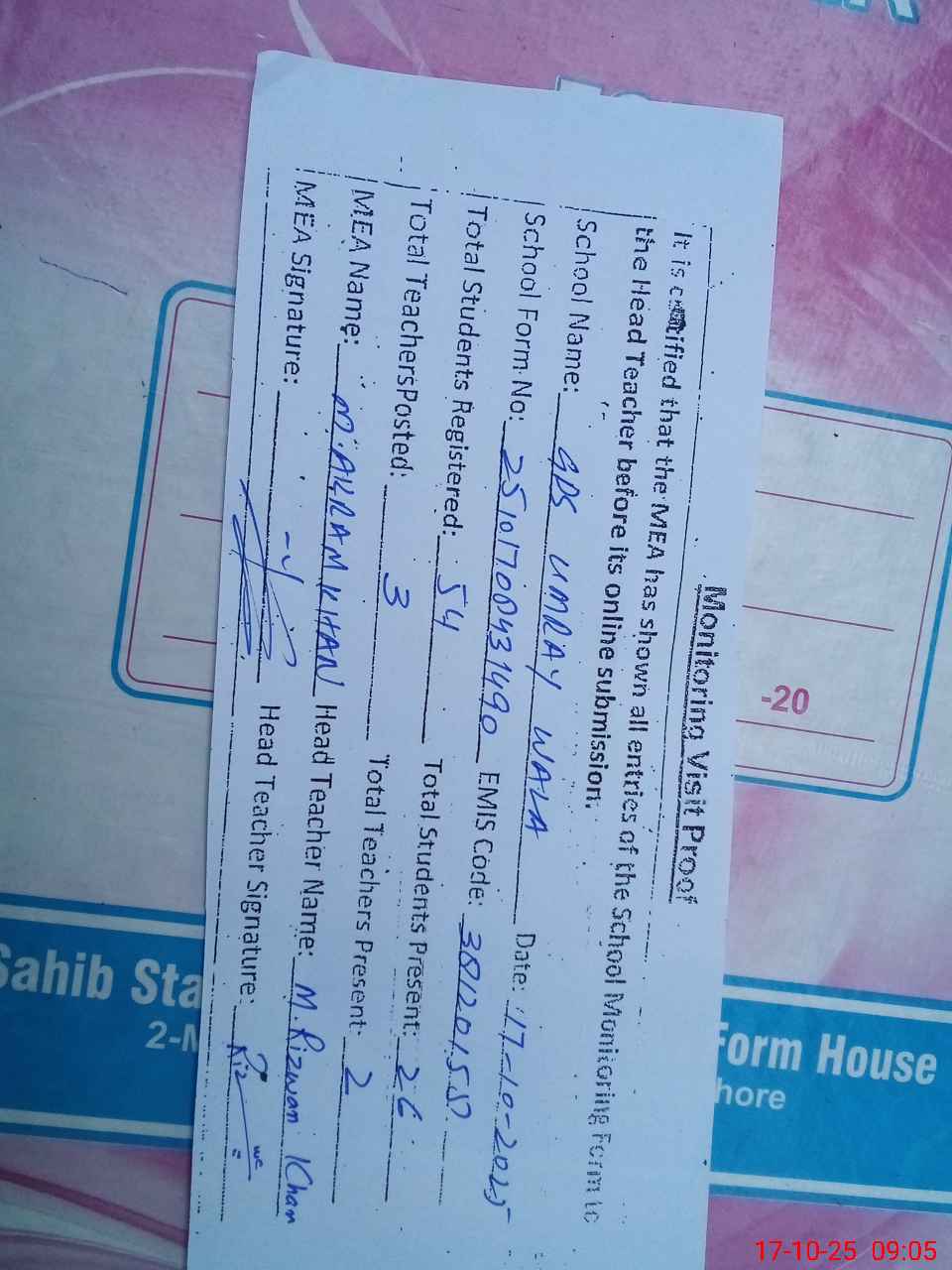 | EMIS Code: 38120158 | Name of School: GPS UMRAY WALA | |||