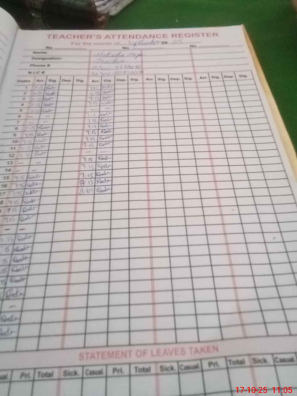 | Name: IQ**** NA**** Designation: (School Headmaster's/Headmistress's) HEAD TEACHER Phone/Cell Number: 03**** |