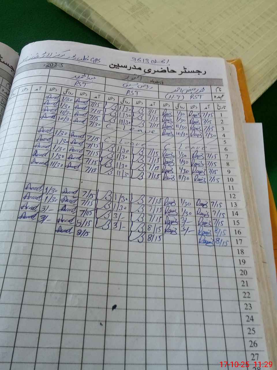 | CNIC | Full Name | Designation | R/C | Absence during last cal. month |