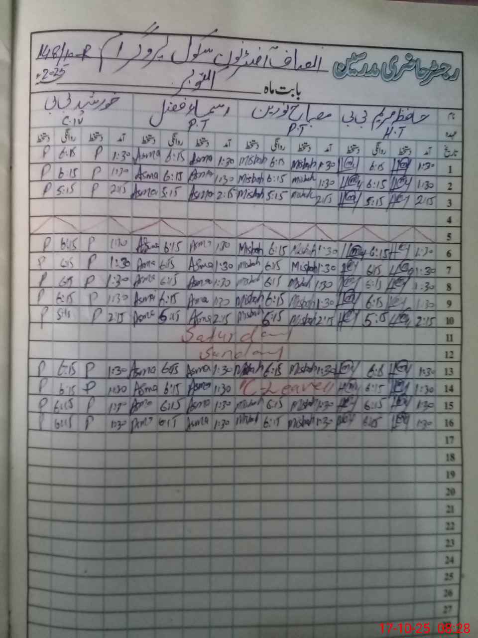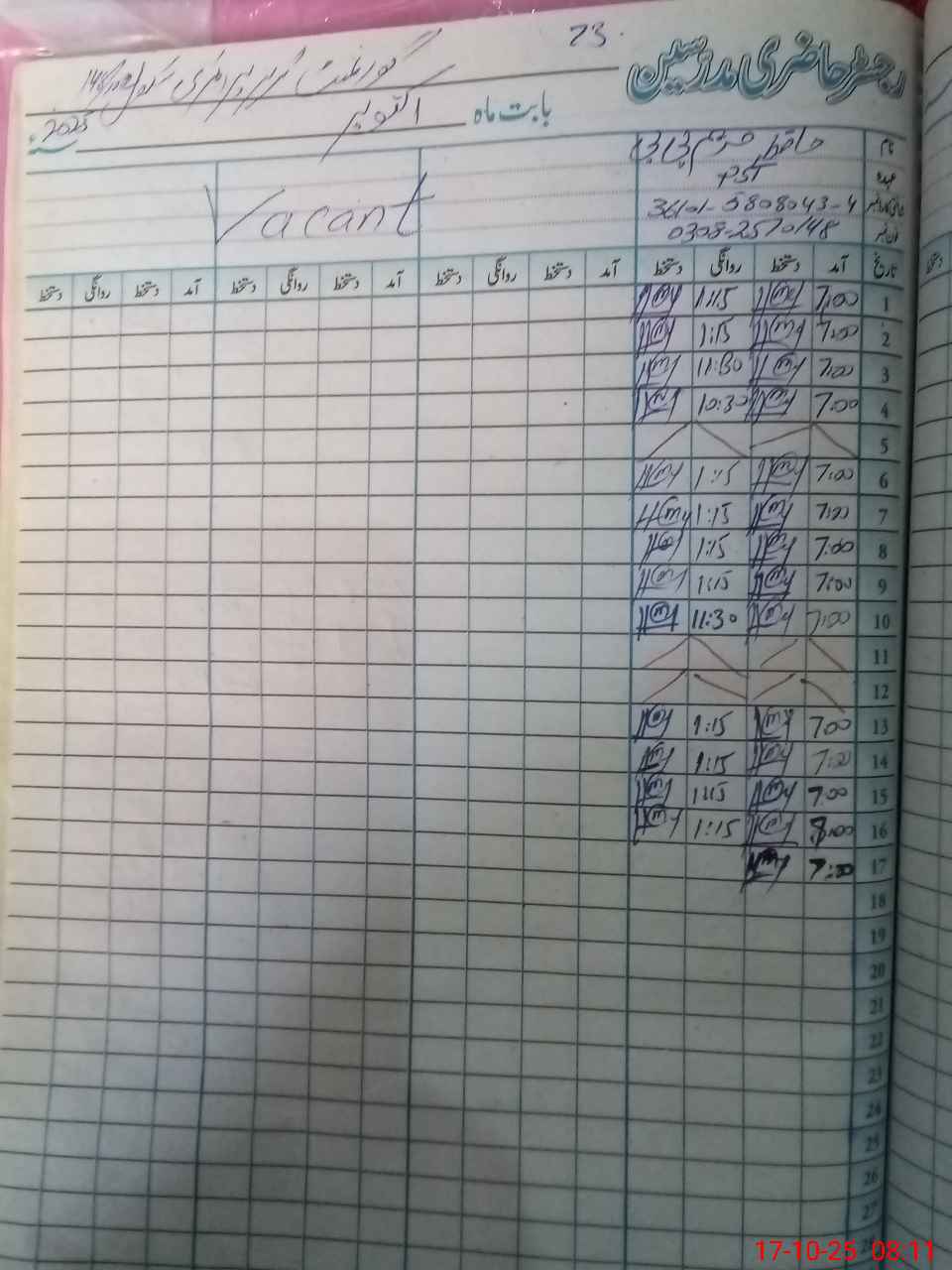 | CNIC | Full Name | Designation | R/C | Absence During Last Calender Month |