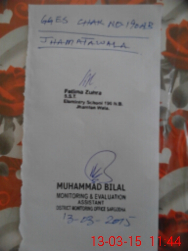 | EMIS Code: 38420714 | Name of School: GGES CHAK NO.190 NB JHAMAT WALA | |||