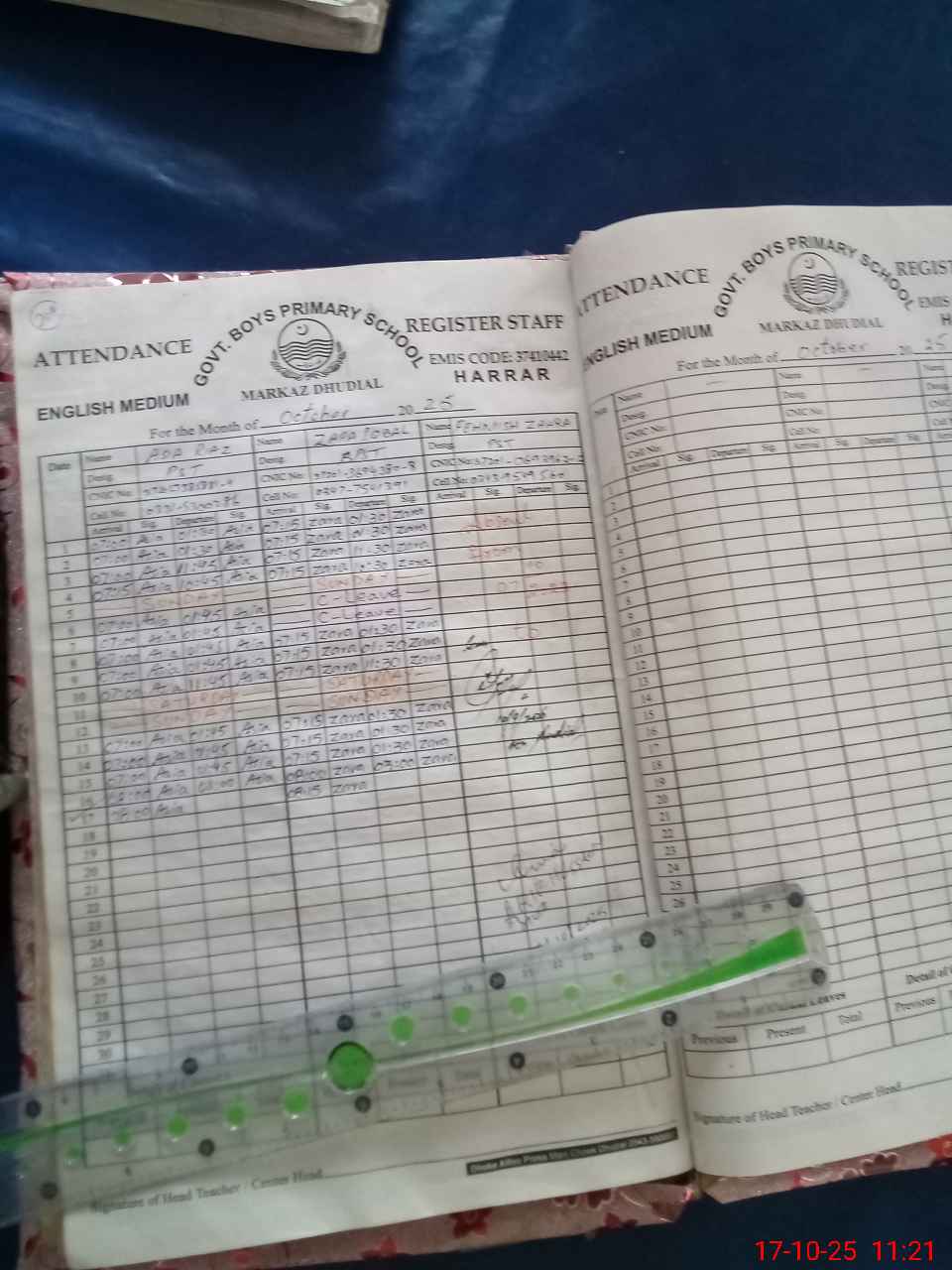 | 37**** | Fe**** Za**** | 1 | 1 | 0 | 0 | 0 | 0 | 0 | 0 | 0 | 0 | 0 | Absent (Un-Authorized) |