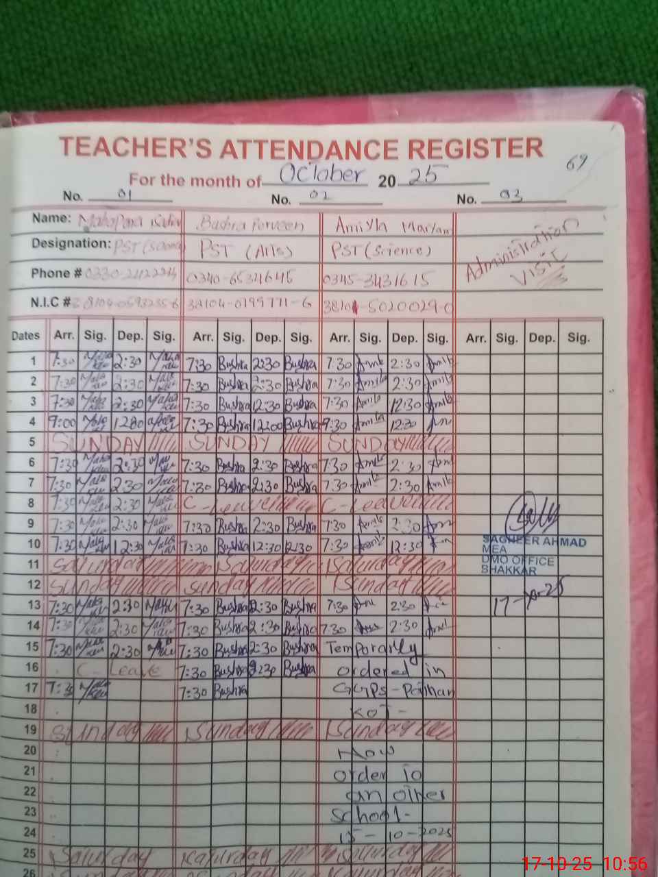 | Monitoring Date: 17-10-2025 | Start Time: 17-10-2025 10:32 AM | End Time: 17-10-2025 11:05 AM | Name of MEA: SA**** AH**** | |