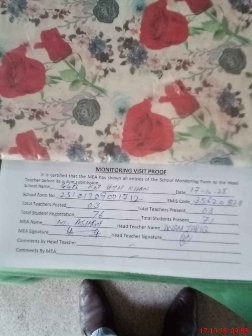 | EMIS Code: 35620828 | Name of School: GGPS KOT HAYAT KHAN | |||