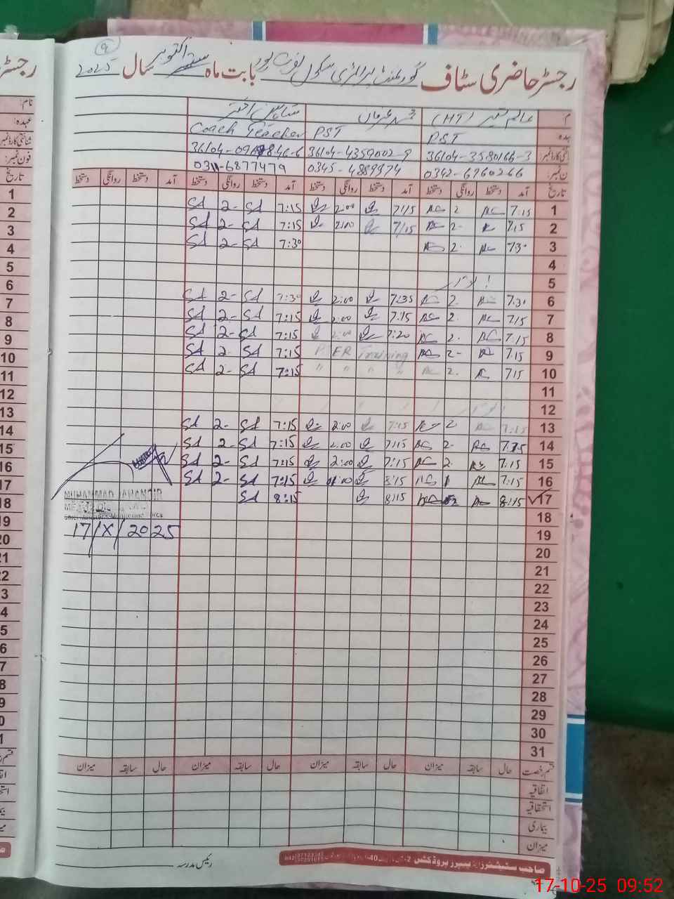 | Name: AL**** SH**** Designation: (School Headmaster's/Headmistress's) PST Phone/Cell Number: 03**** |