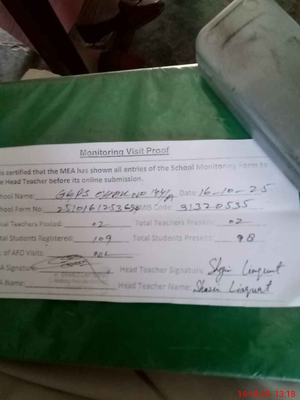 | EMIS Code: 31320535 | Name of School: GGPS CHAK NO 144/A | |||