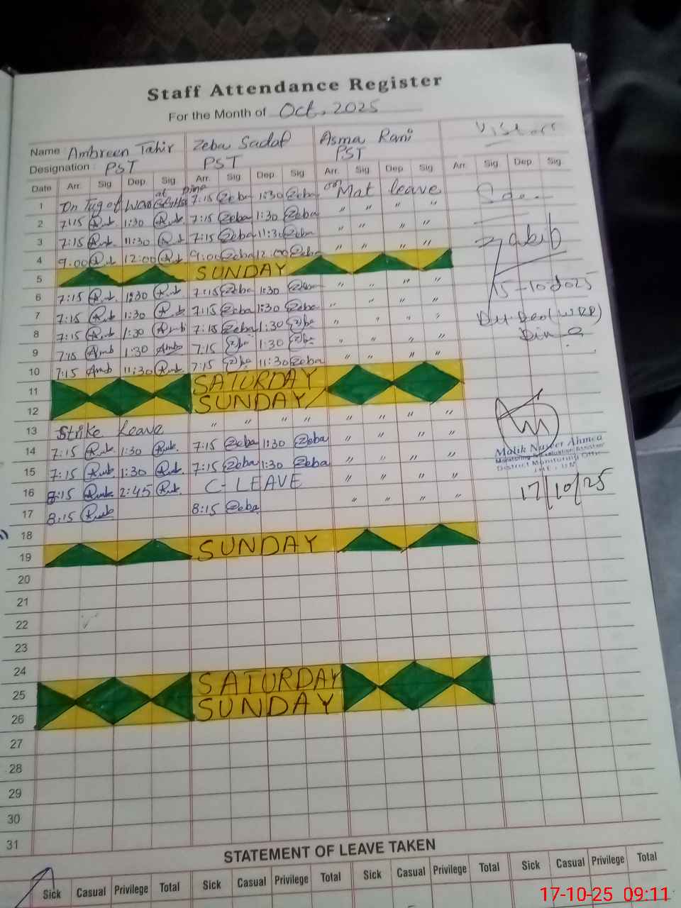 | 37**** | As**** Ra**** | PST | Regular | 9 | 0 | 0 | 9 | 0 | 0 | 0 | 0 | 0 | Maternity |