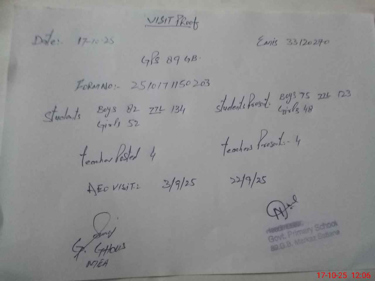 | EMIS Code: 33120270 | Name of School: GPS 89 GB | |||