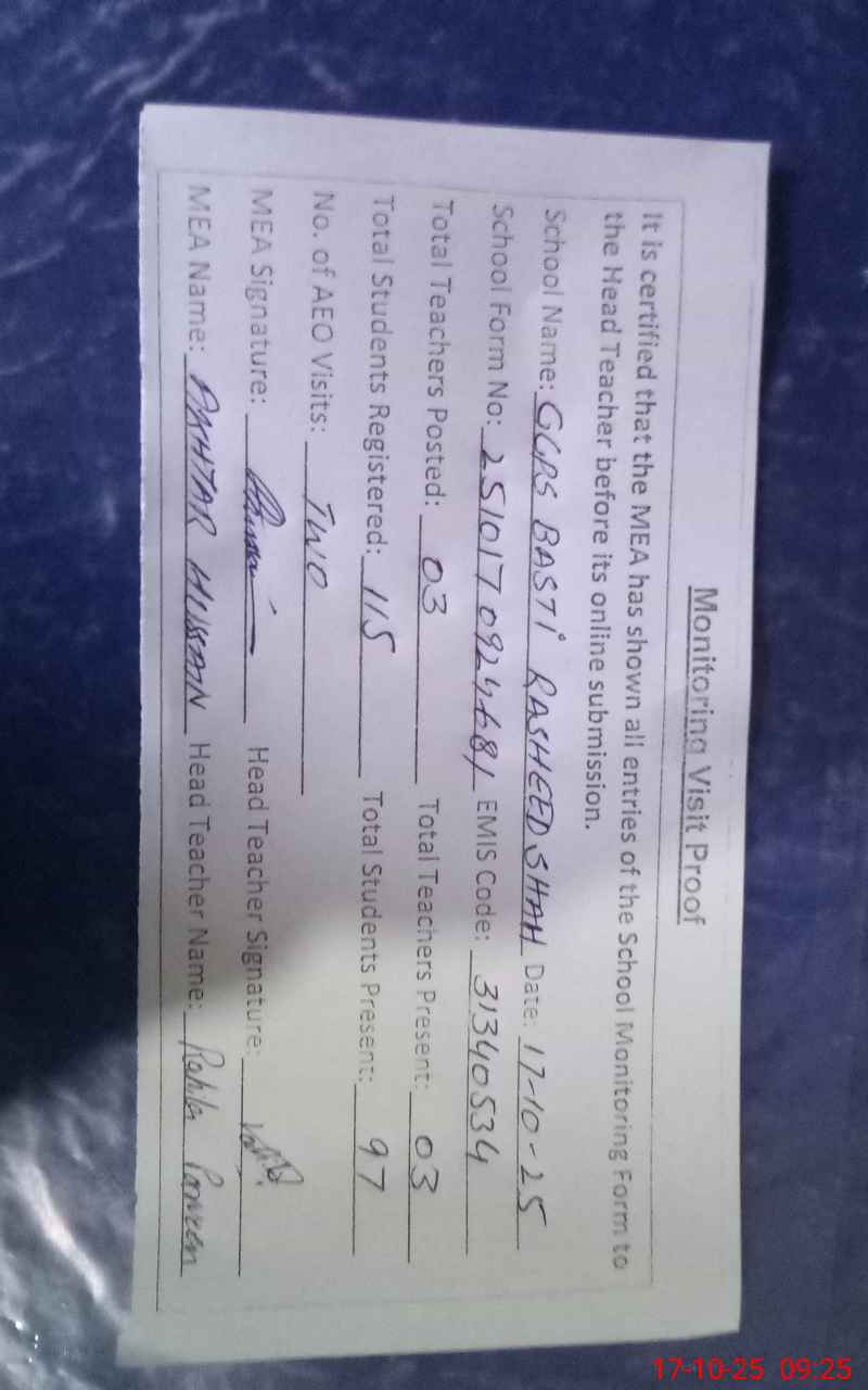 | EMIS Code: 31340534 | Name of School: GGPS BASTI RASHID SHAH | |||