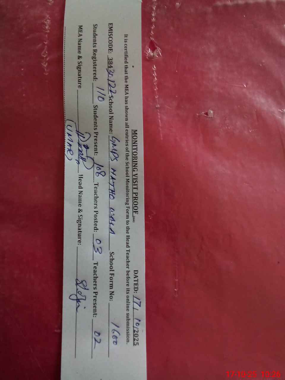 | Certified that this School was Inspected by the Undersigned MEA/DMO Today and the Information Stated Above is as Per Record. | |||||