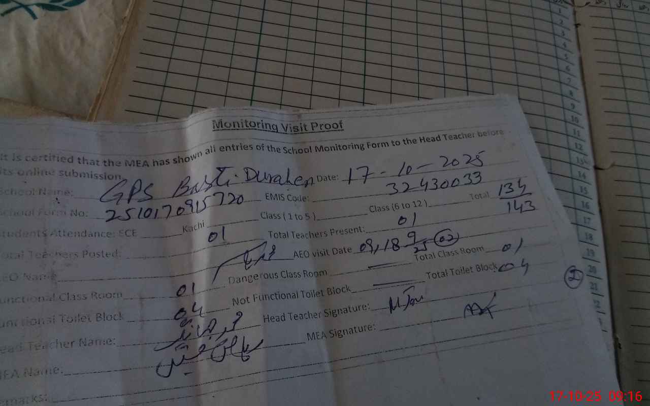 | EMIS Code: 32430033 | Name of School: GPS BASTI DURAHEN | |||