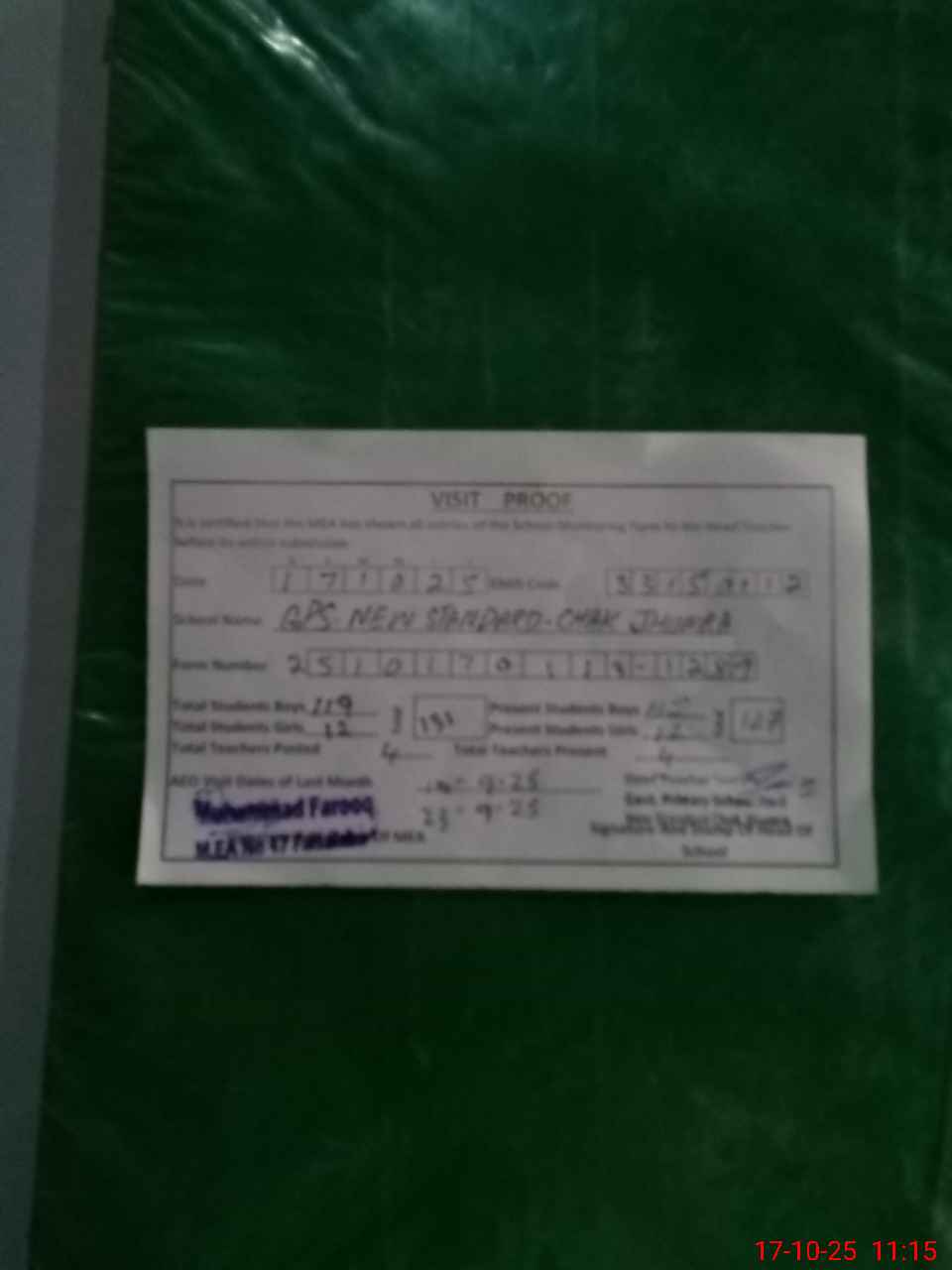 | Certified that this School was Inspected by the Undersigned MEA/DMO Today and the Information Stated Above is as Per Record. | |||||