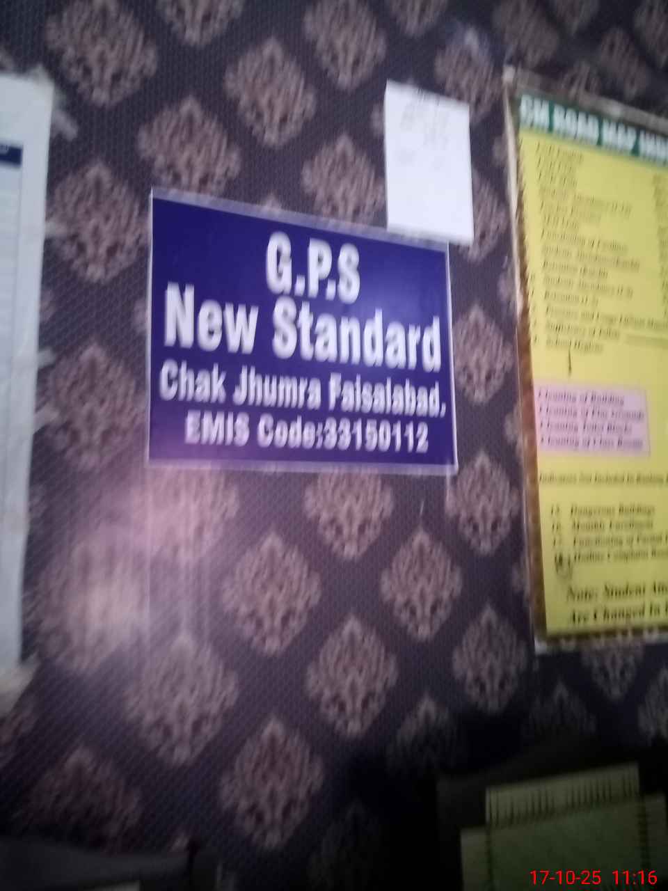 | EMIS Code: 33150112 | Name of School: GPS NEW STANDARD CHAK JHUMRA | |||