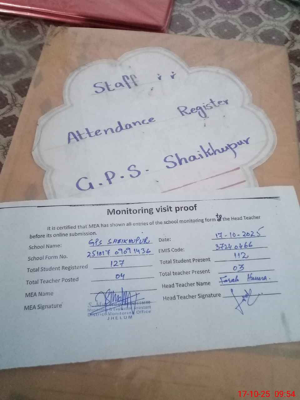 | EMIS Code: 37240466 | Name of School: GPS SHEIKHU PUR | |||