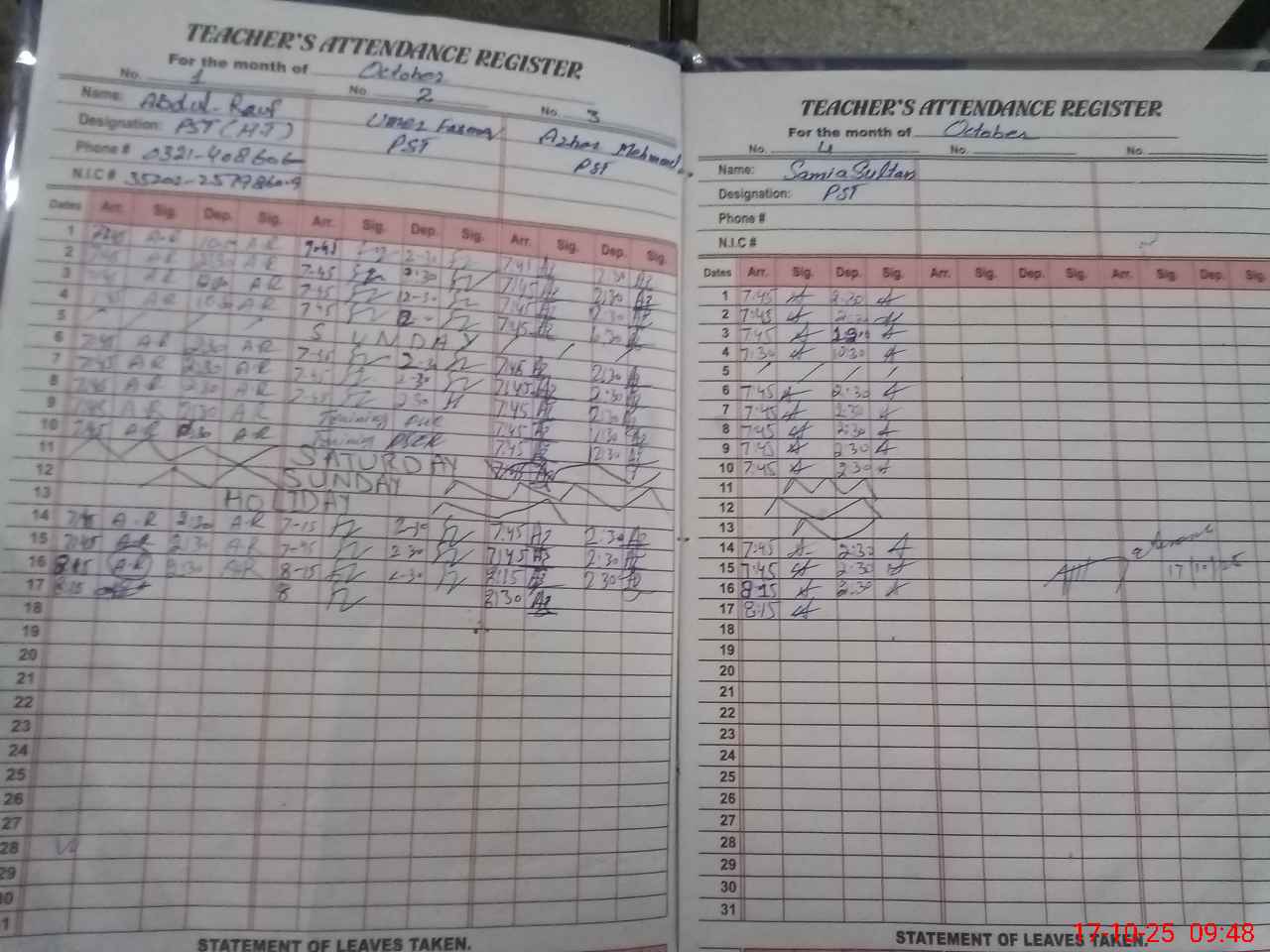 | Name: Ab**** Ra**** Designation: (School Headmaster's/Headmistress's) PST Phone/Cell Number: 03**** |