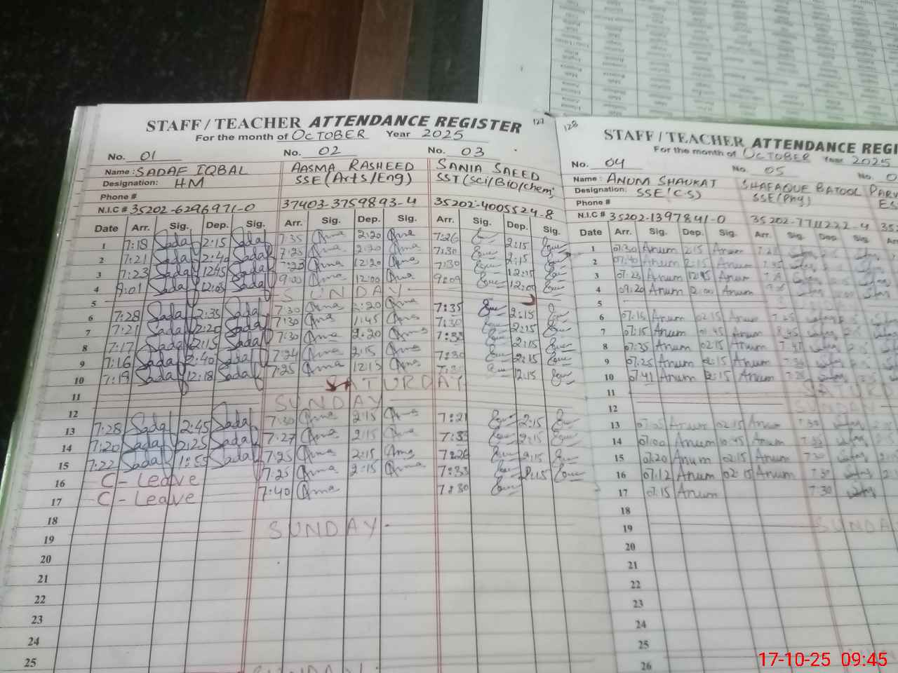 | Name: Sa**** Iq**** Designation: (School Headmaster's/Headmistress's) Head Mistress Phone/Cell Number: 03**** |