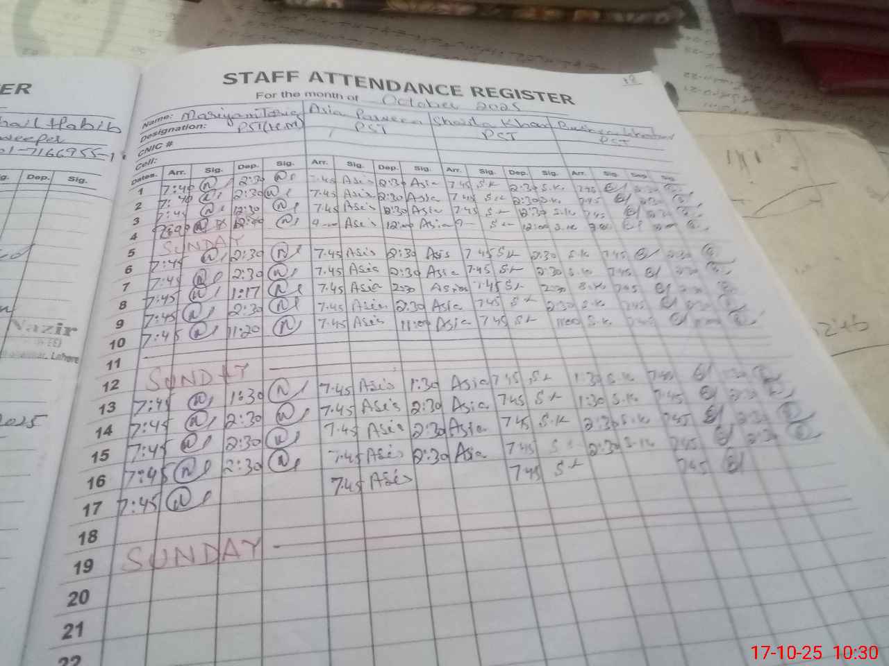 | 35**** | SO**** HA**** | SWEEPER | Regular | 0 | 0 | 30 | 0 | 0 | 0 | 0 | 0 | 0 | Absent (Un-Authorized) |