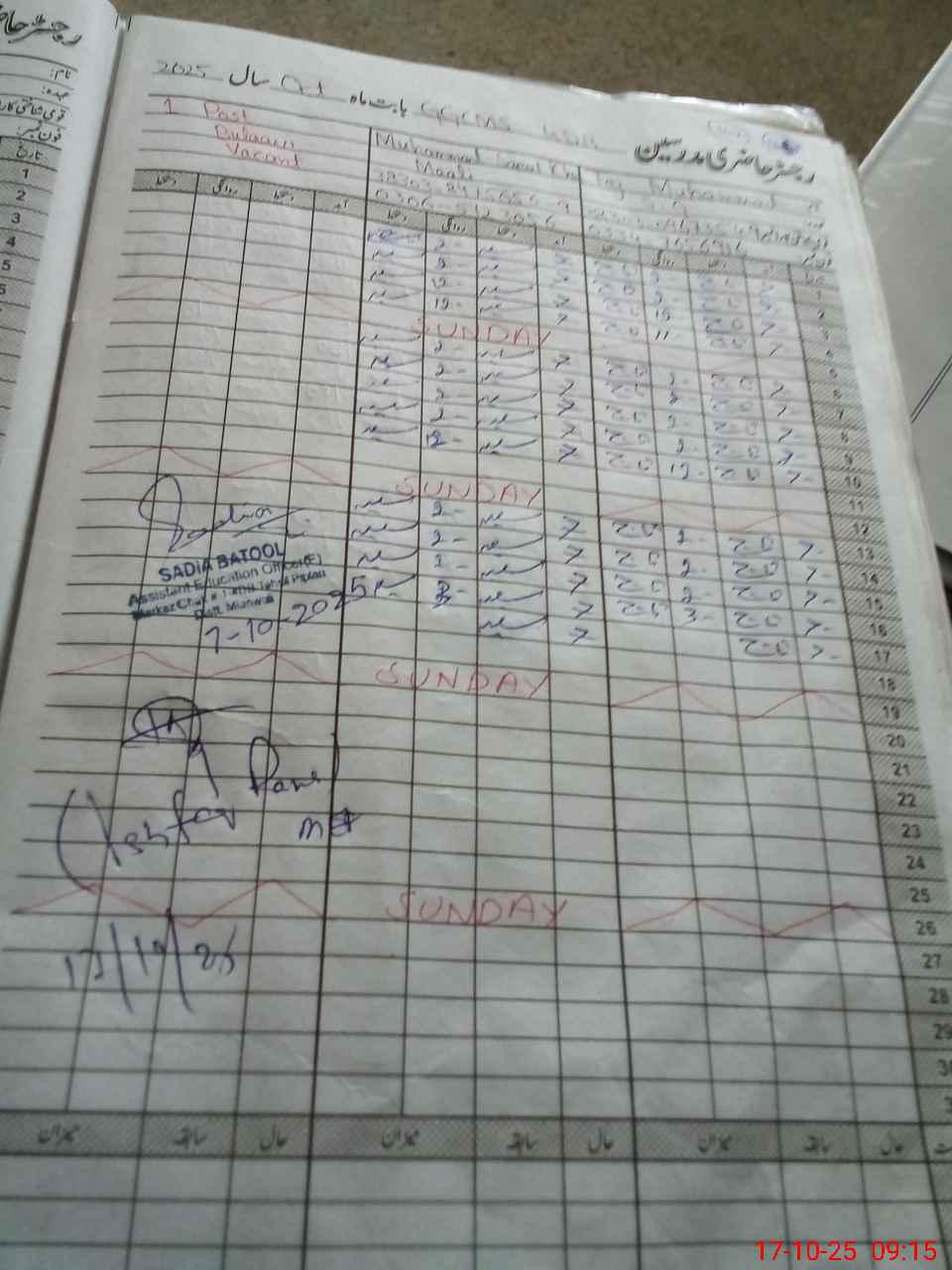 | CNIC | Full Name | Designation | R/C | Absence During Last Calender Month |