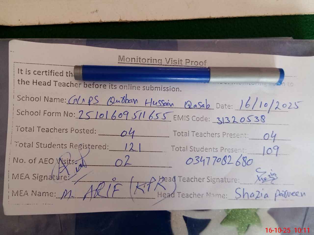 | EMIS Code: 31320538 | Name of School: GGPS BASTI QURBAN QASAB | |||