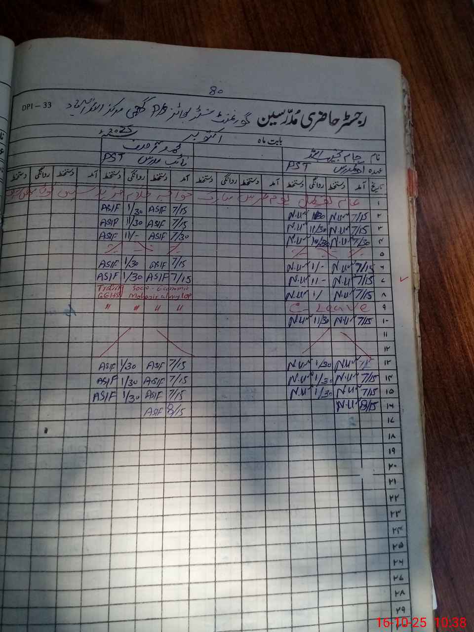 | Leave | Duty | Absent | Maternity | Medical | Ex- Pak |