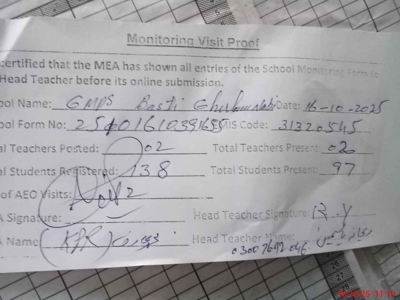 | Certified that this School was Inspected by the Undersigned MEA/DMO Today and the Information Stated Above is as Per Record. | |||||