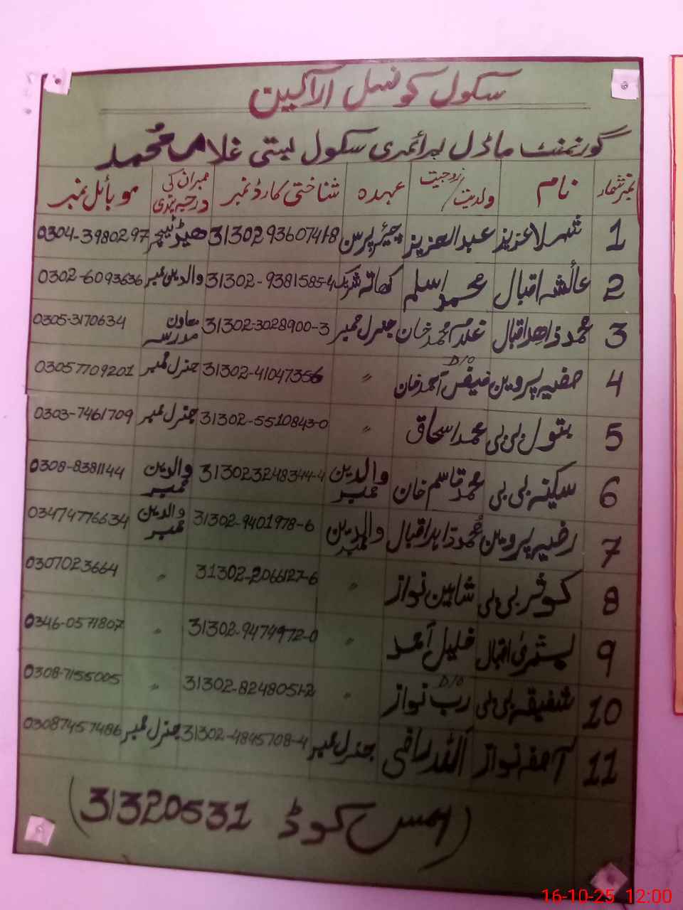 | EMIS Code: 31320531 | Name of School: GMPS BASTI GHULAM MUHAMMAD | |||