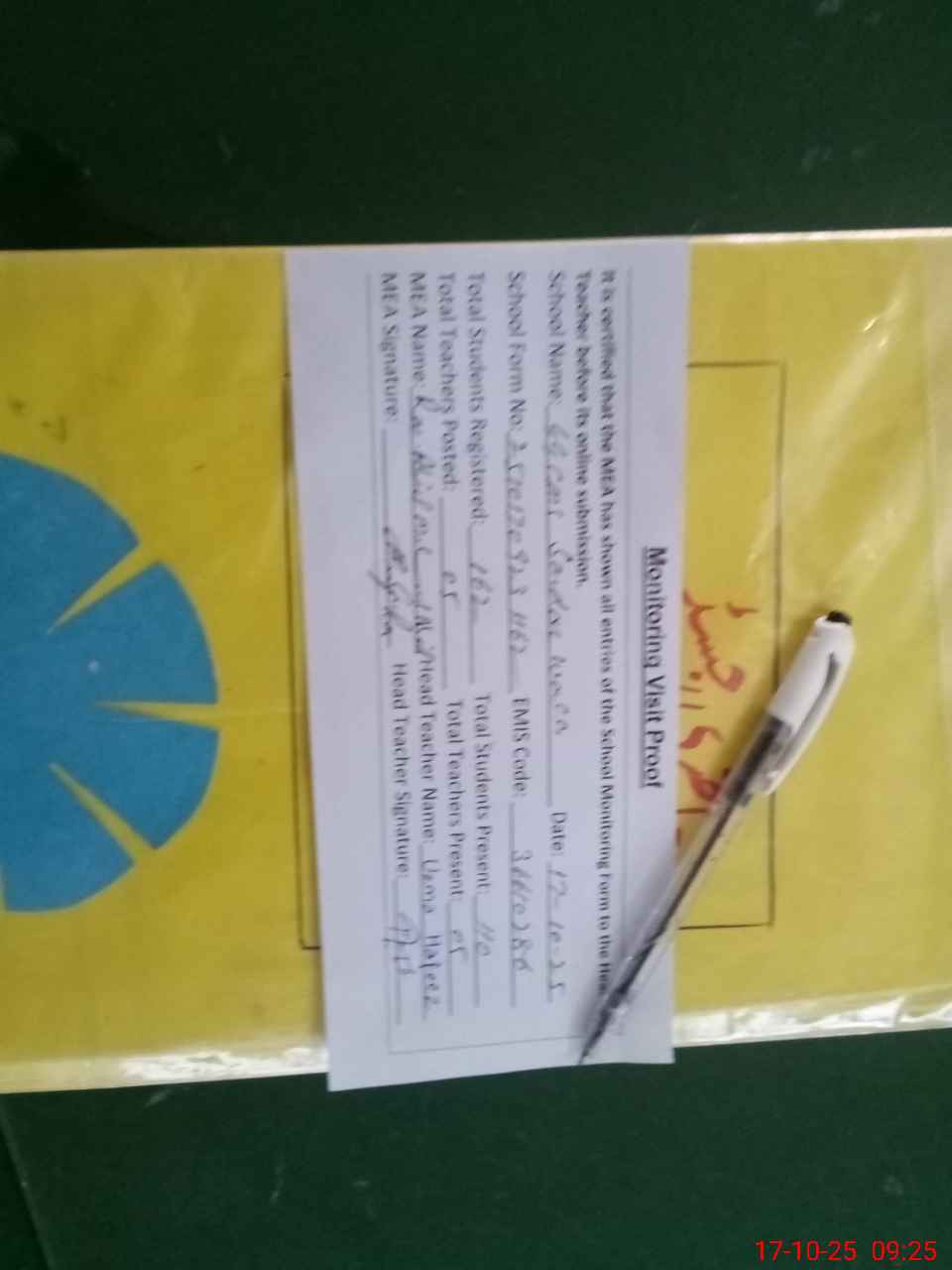 | Attendance Register | Head Teacher | MEA with School | Visit Proof |