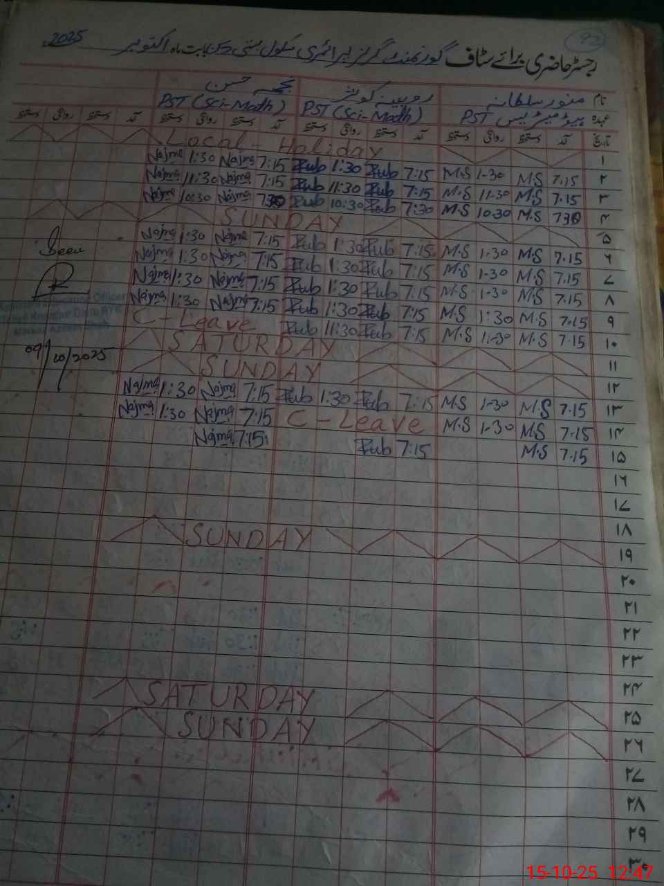 | CNIC | Full Name | Designation | R/C | Absence During Last Calender Month |