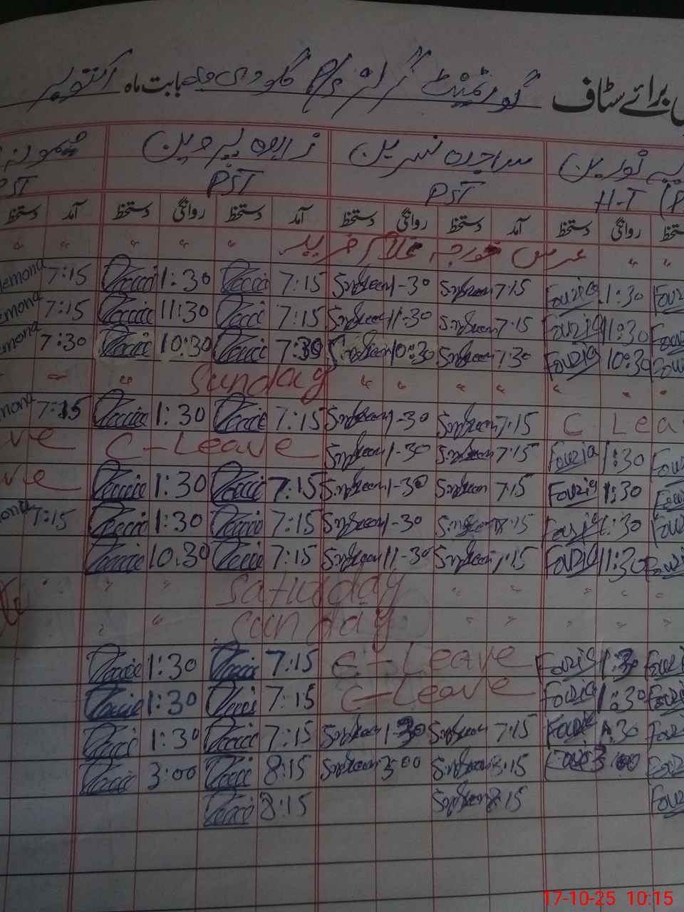 | Leave | Duty | Absent | Maternity | Medical | Ex- Pak |