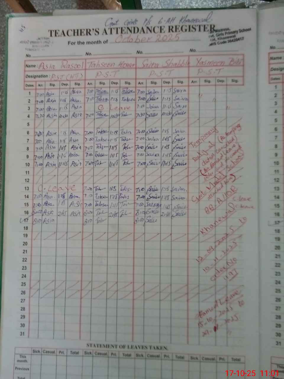 | Name: AS**** RA**** Designation: (School Headmaster's/Headmistress's) PST Phone/Cell Number: 03**** |