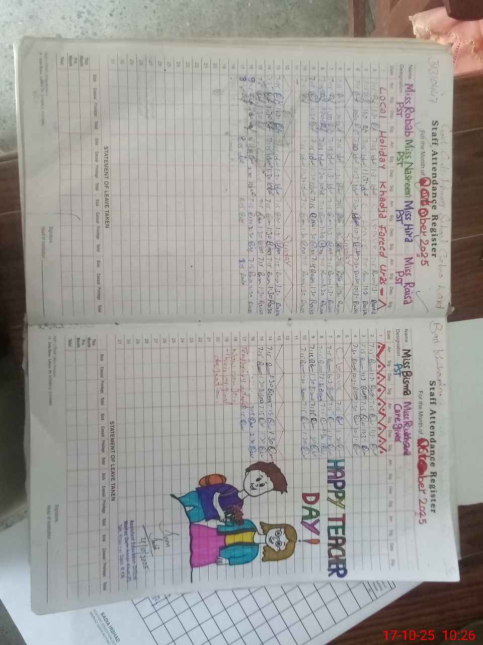 | Leave | Duty | Absent | Maternity | Medical | Ex- Pak |