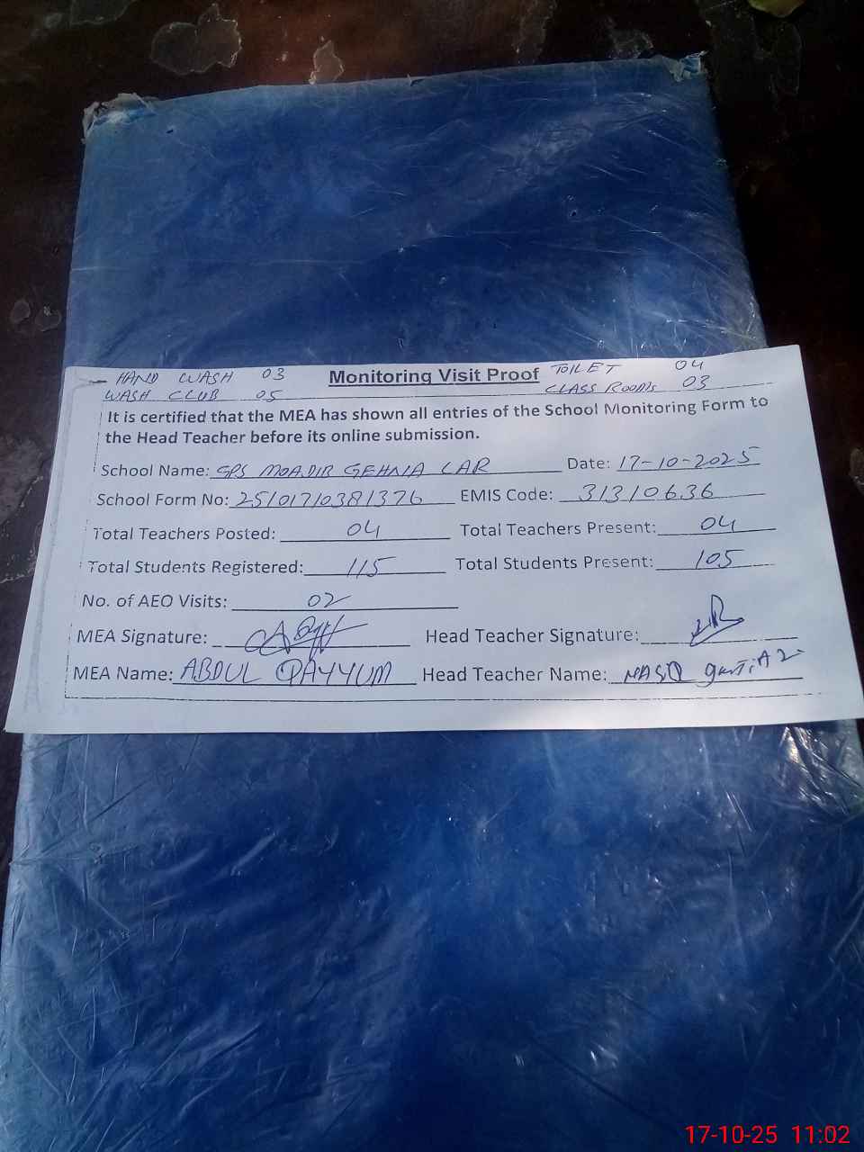 | EMIS Code: 31310636 | Name of School: GPS MOADIB GAHANA LAR | |||