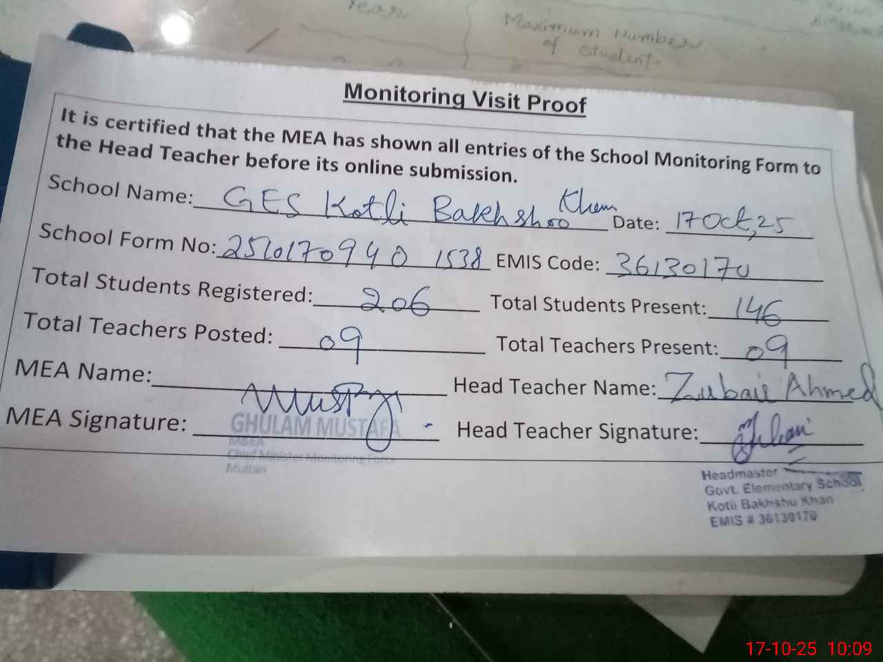 | EMIS Code: 36130170 | Name of School: GES KOTLI BAKHSHO KHAN MUZA KOTLI BAKHSHO KHAN | |||