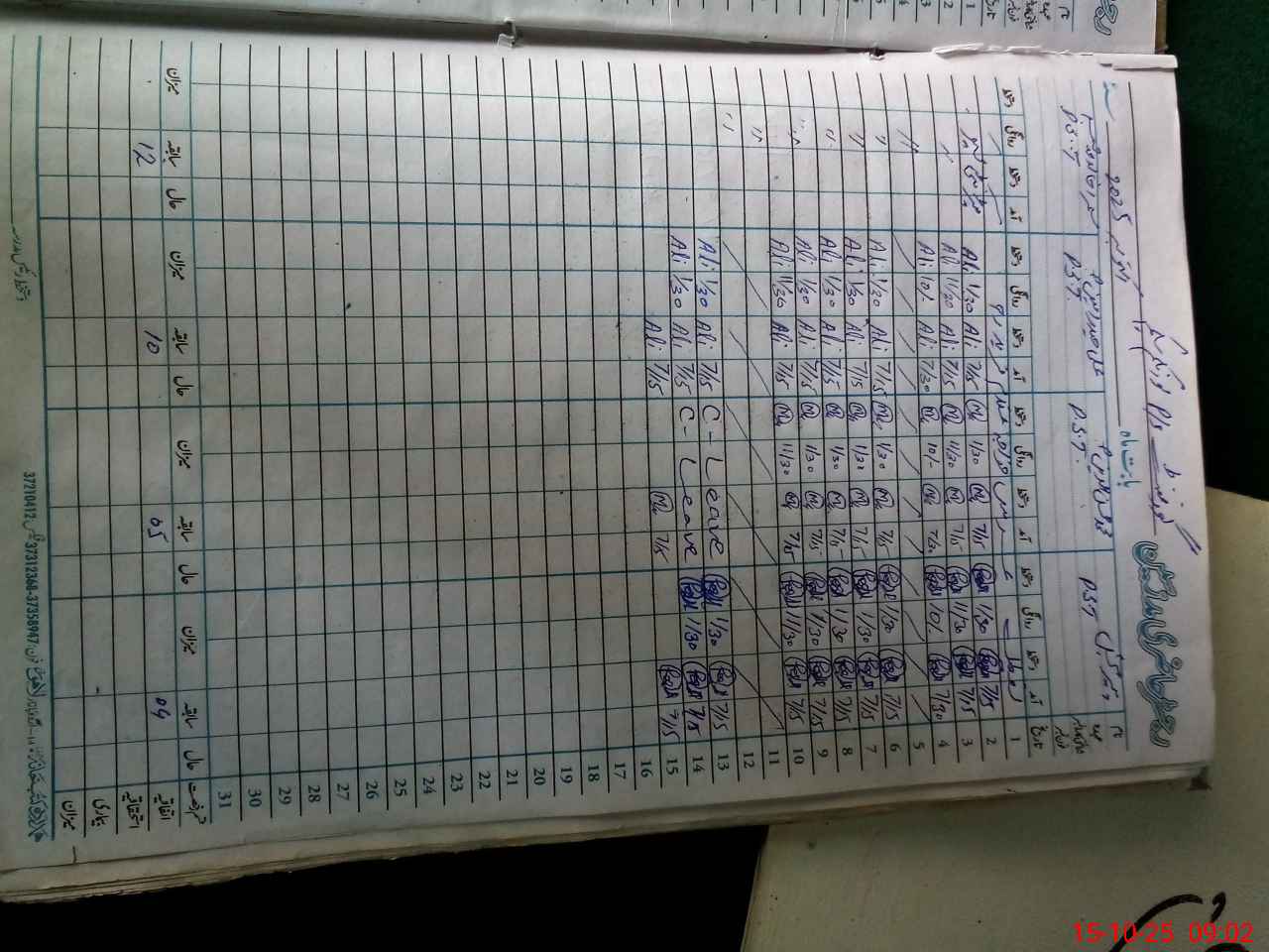 | CNIC | Full Name | Designation | R/C | Absence During Last Calender Month |