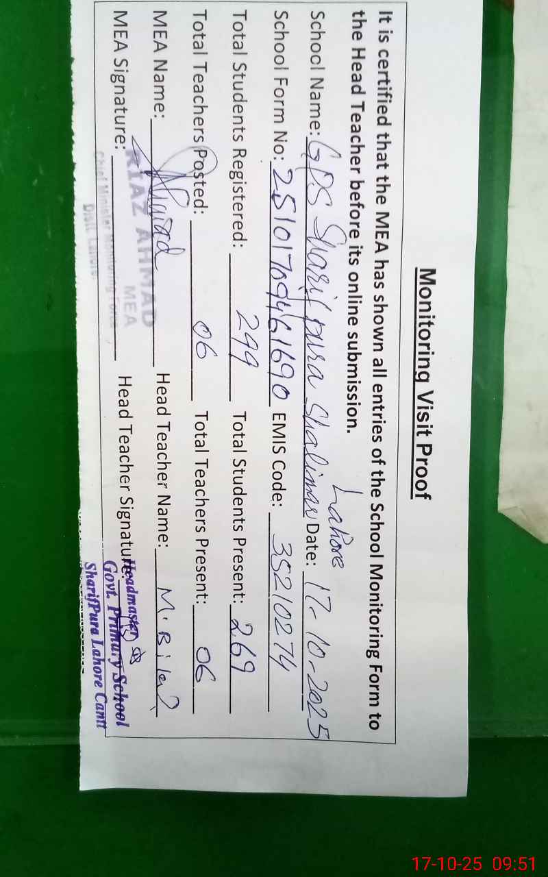 | EMIS Code: 35210274 | Name of School: GPS SHARIF PURA | |||