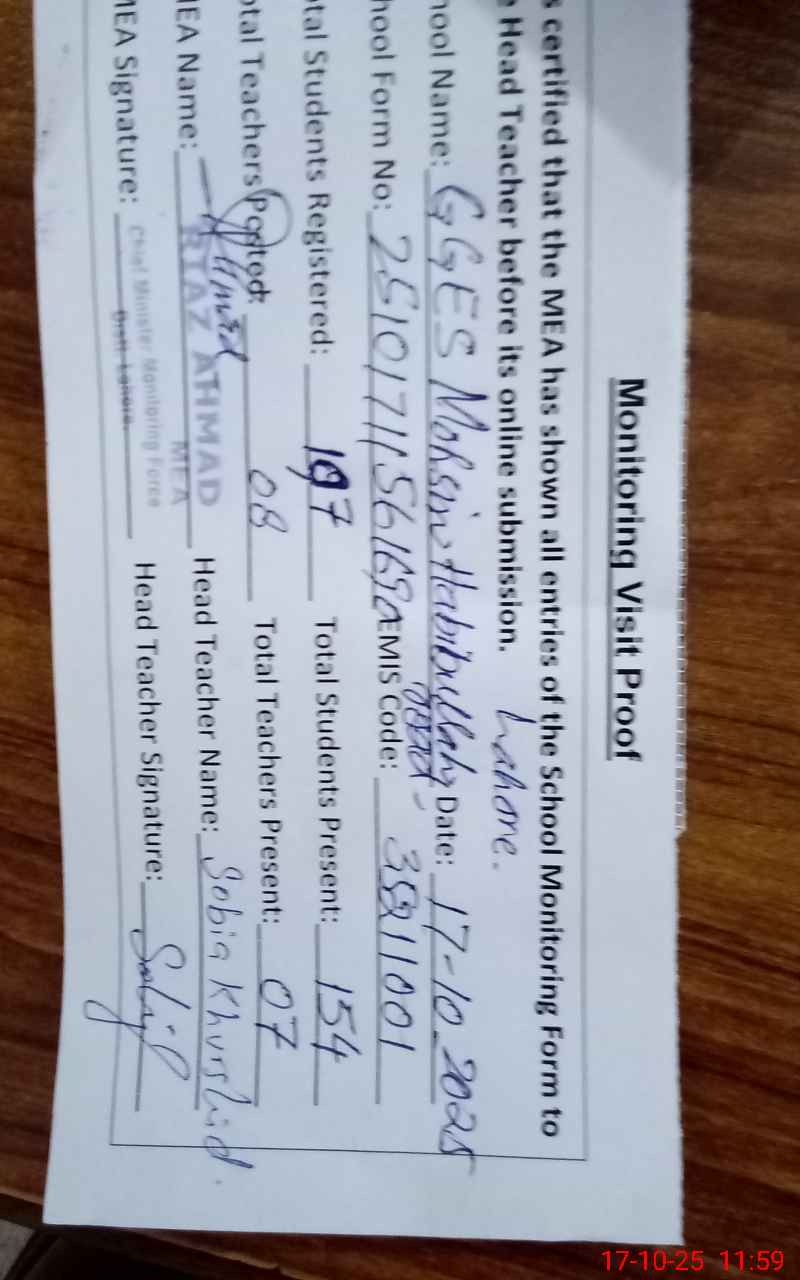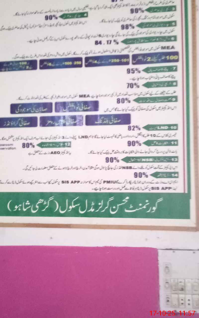 | EMIS Code: 35211001 | Name of School: GGES MOHSIN HABIB ULLAH ROAD GHARHI SHAHO | |||