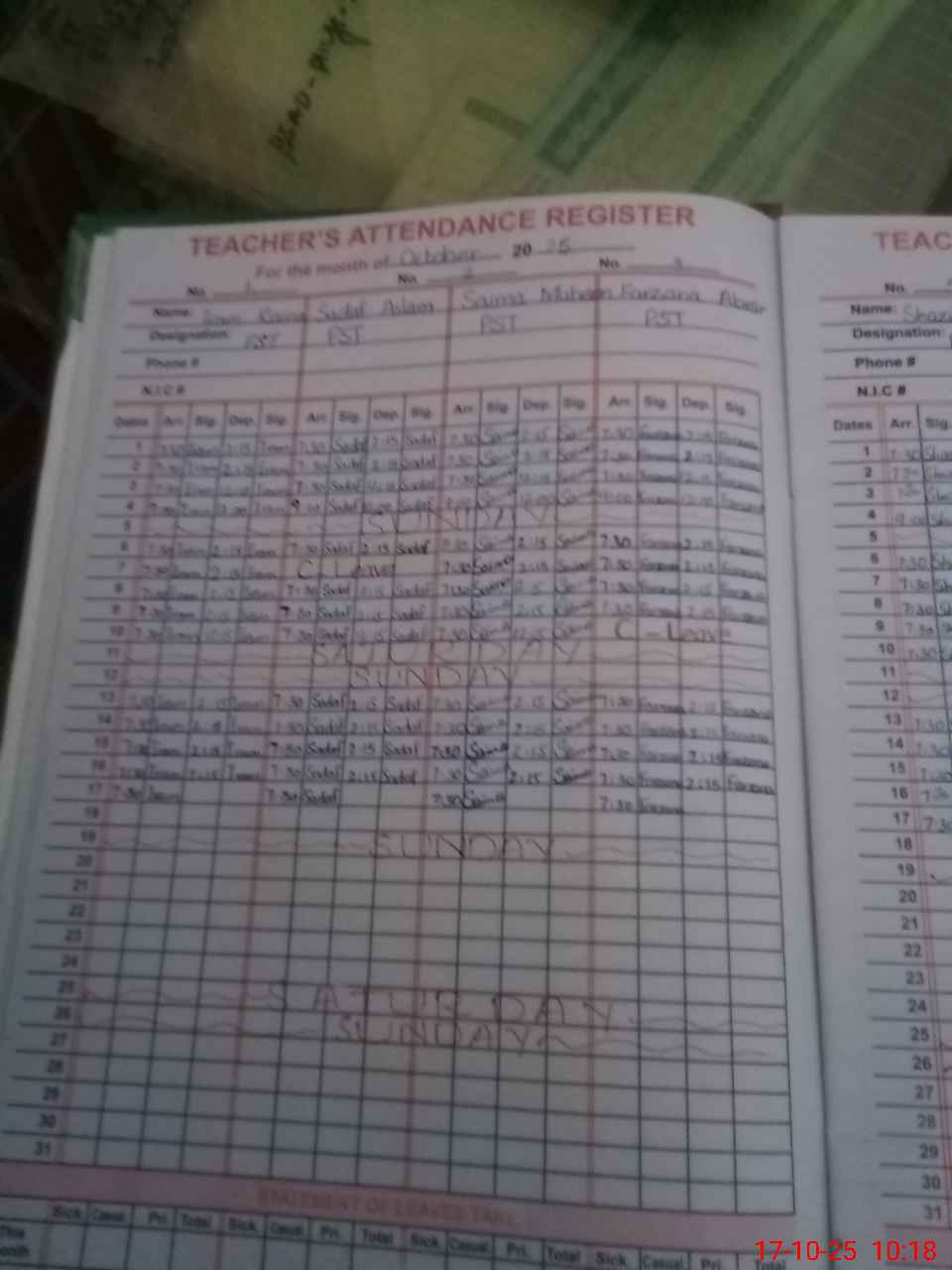 | Name: Ir**** Ra**** Designation: (School Headmaster's/Headmistress's) PST Phone/Cell Number: 03**** |