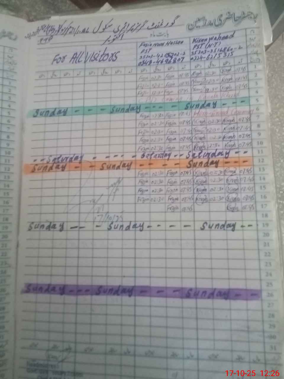 | Name: KI**** WA**** Designation: (School Headmaster's/Headmistress's) PST Phone/Cell Number: 03**** |