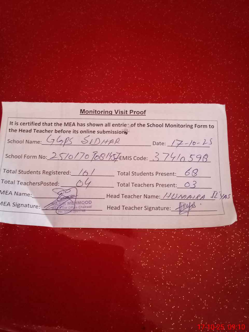 | Remarks (Use Separate Page if Required): Maria Bibi transfered from GGPS Dhok Ajnal to GGPS Sridhar against order NoCkl primary 15098 2025 dated 15 Oct 2025 Request Add her name in MEAs Tab Submitted | |||||