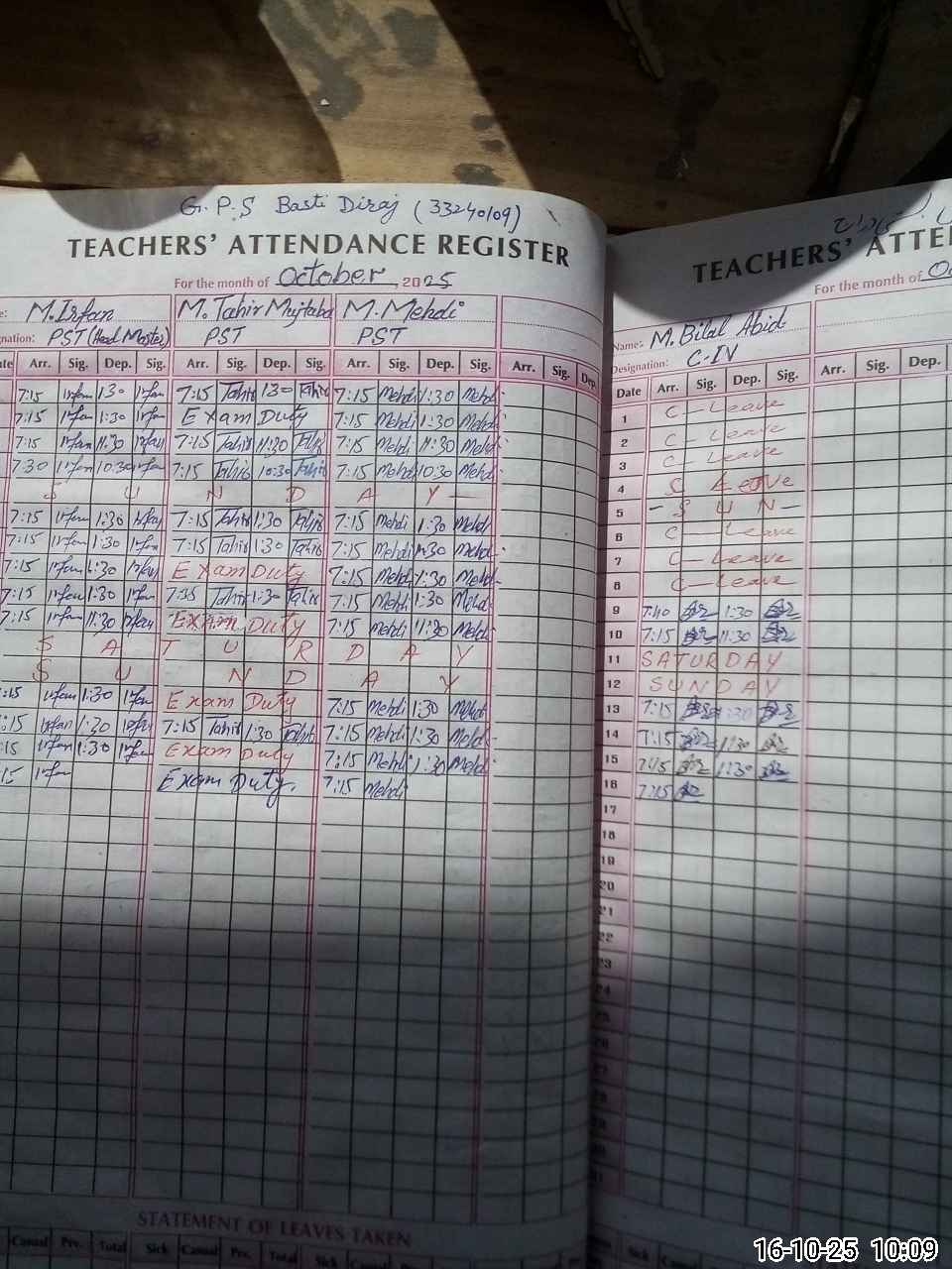 | 33**** | Mu**** Ta**** Mu**** | 1 | 1 | 0 | 0 | 0 | 0 | 0 | 0 | 0 | 0 | 0 | Exam Duty |