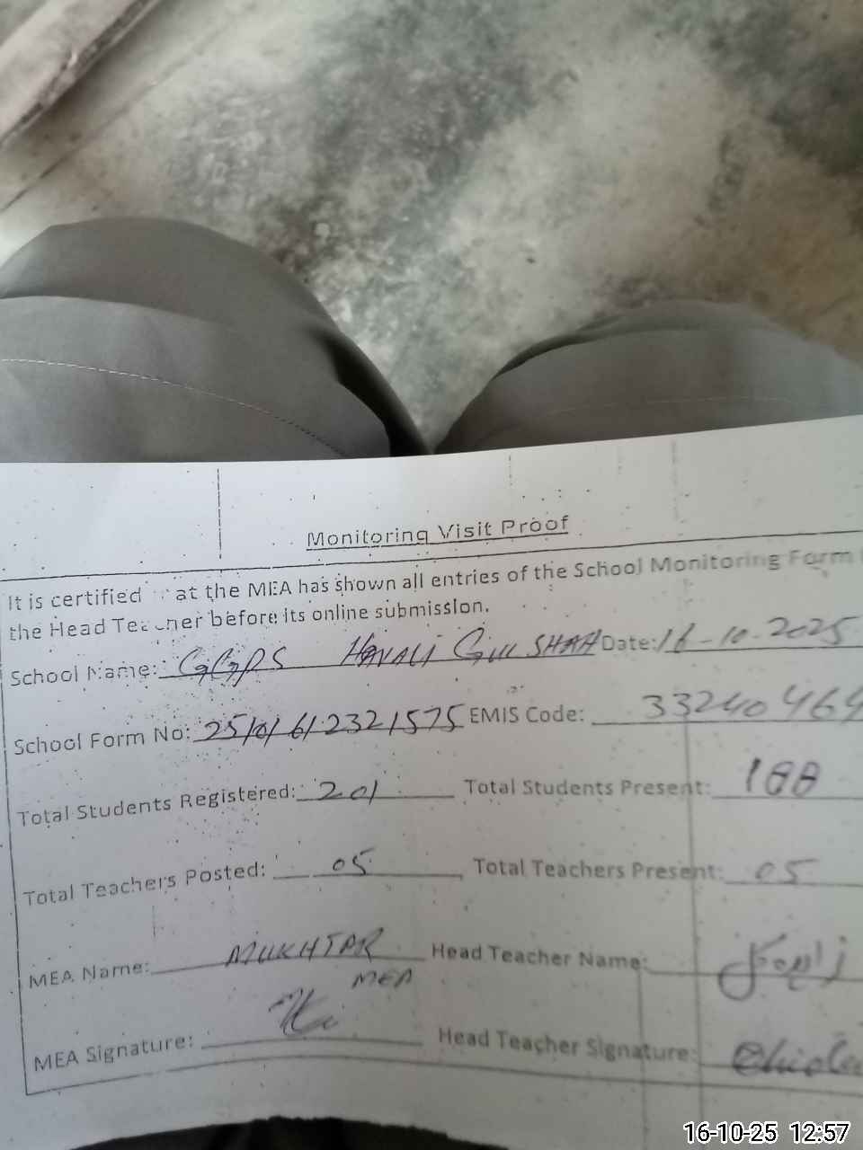 | EMIS Code: 33240464 | Name of School: GMPS Haveli Gul Shah (April-2016) | |||