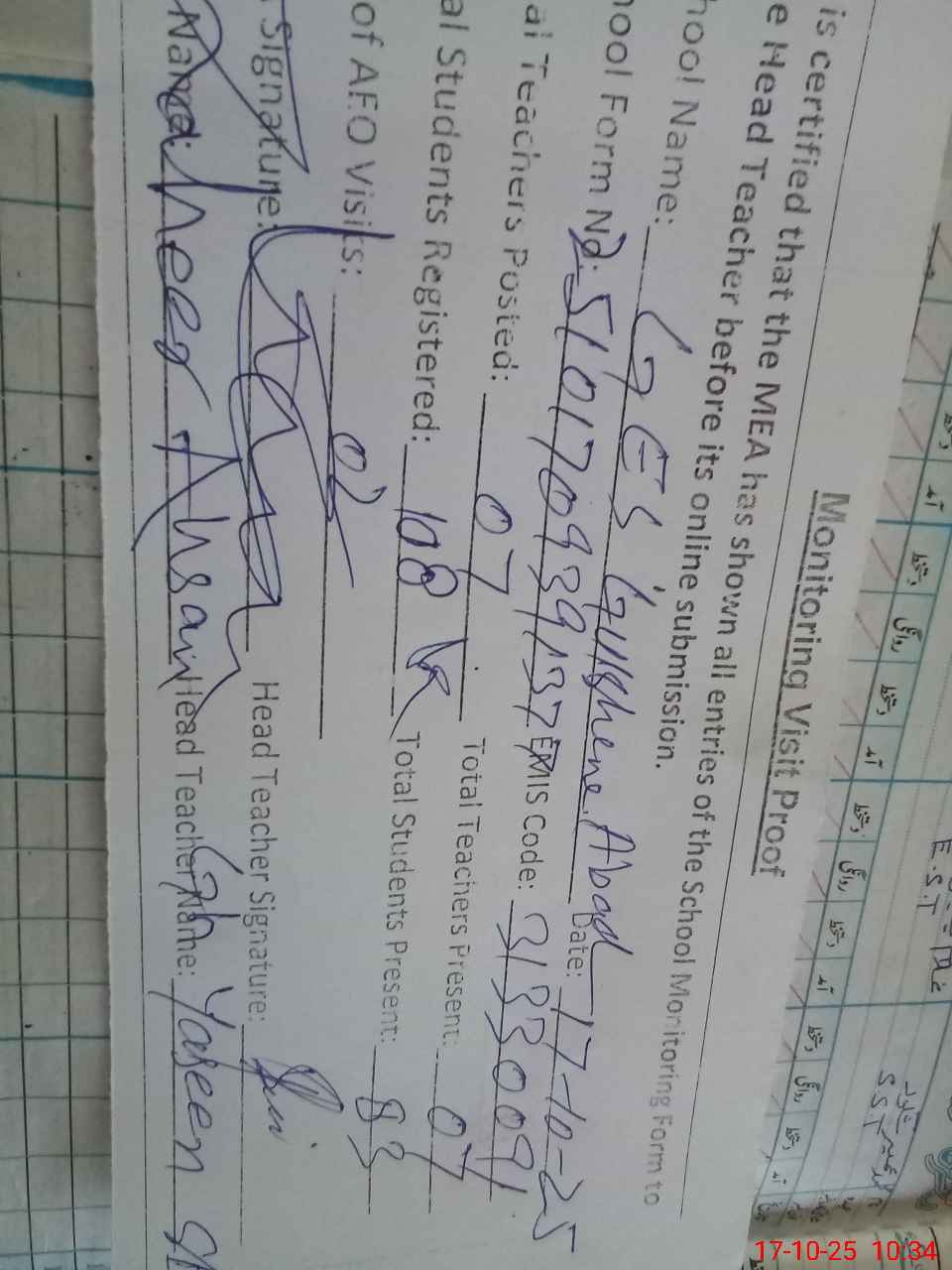 | EMIS Code: 31330091 | Name of School: GES GULSHAN ABAD | |||
