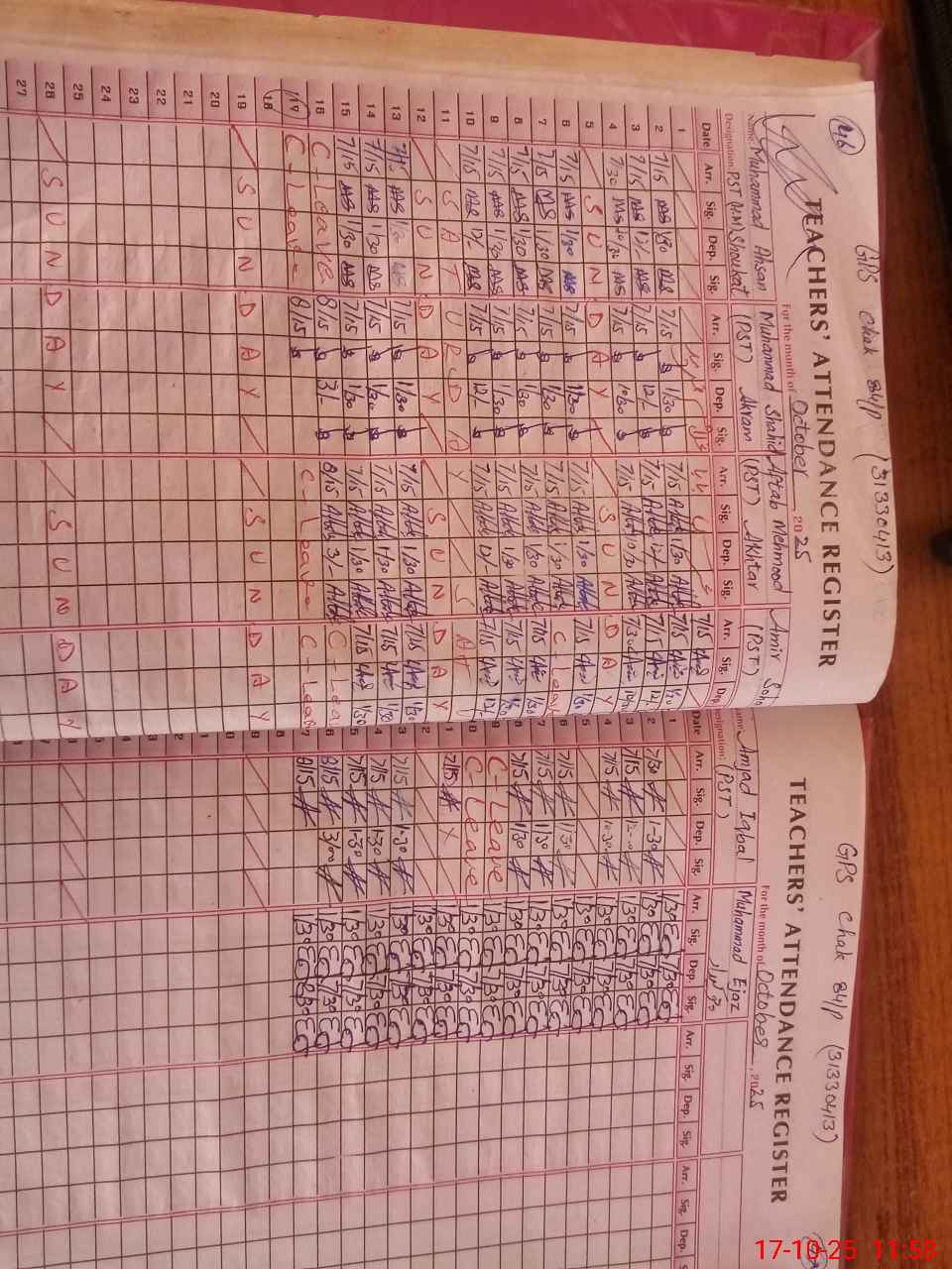 | CNIC | Full Name | Designation | R/C | Absence during last cal. month |