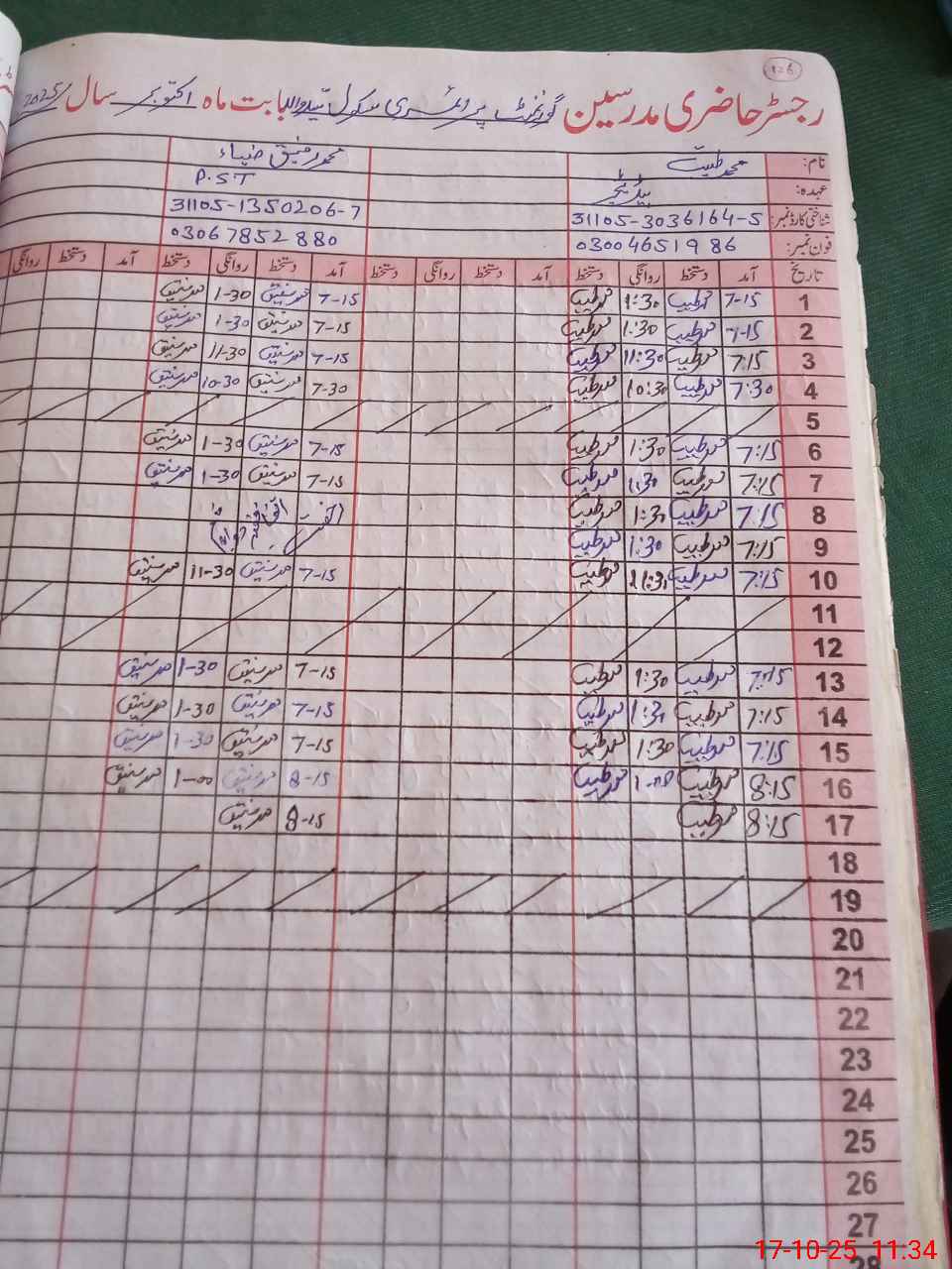 | Name: MU**** Ta**** Designation: (School Headmaster's/Headmistress's) P S T Phone/Cell Number: 03**** |