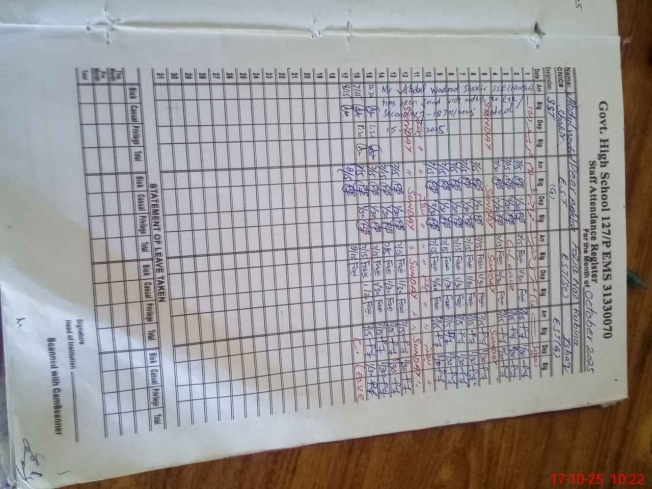 | Name: Ab**** Wa**** Sh**** Designation: (School Headmaster's/Headmistress's) SST(Sci Math) Phone/Cell Number: 03**** |