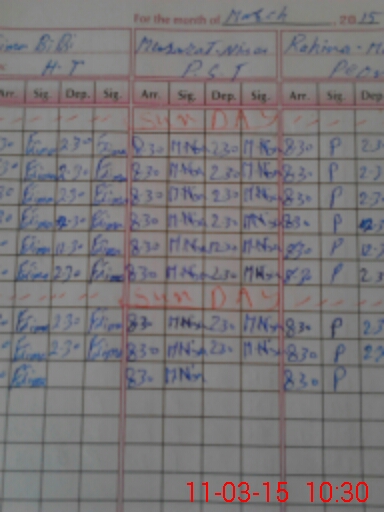 | Monitoring Date: 11-03-2015 | Start Time: 11-03-2015 10:20 AM | End Time: 11-03-2015 10:33 AM | Name of MEA: Ma**** Ah**** -S**** | |