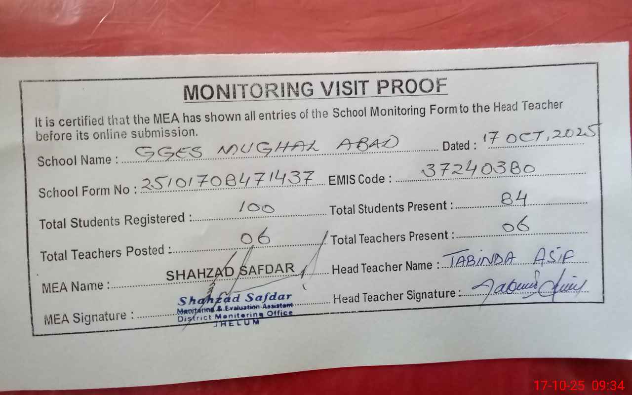 | EMIS Code: 37240380 | Name of School: GGES MUGHAL ABAD | |||