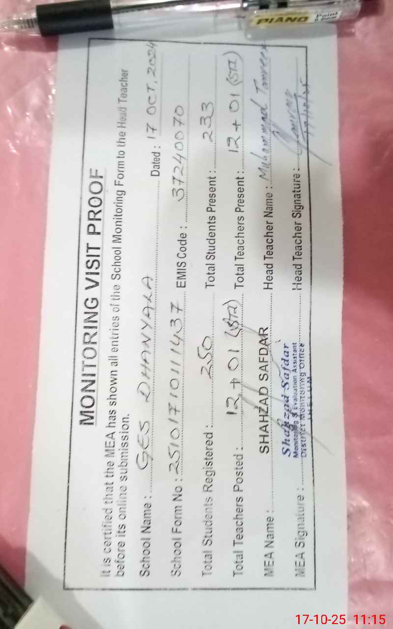 | Certified that this School was Inspected by the Undersigned MEA/DMO Today and the Information Stated Above is as Per Record. | |||||