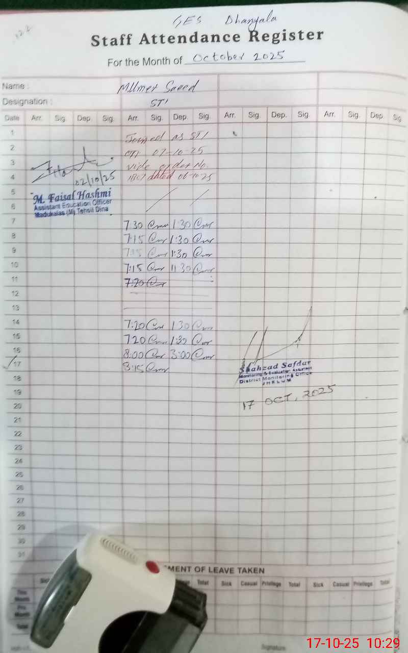 | Name: MU**** TA**** Designation: (School Headmaster's/Headmistress's) SST Phone/Cell Number: 03**** |