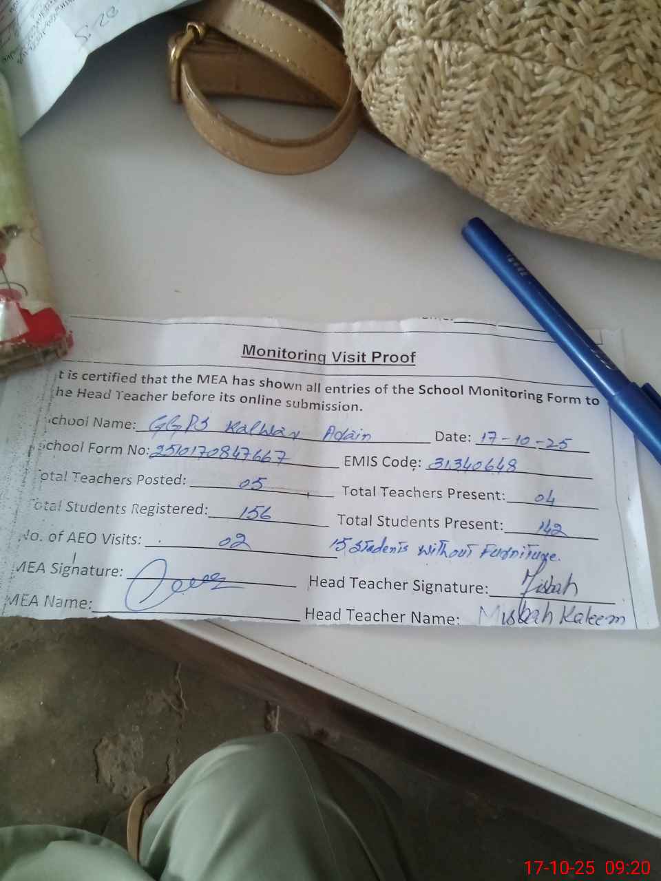 | EMIS Code: 31340648 | Name of School: GGPS KALWARA ARAIN | |||